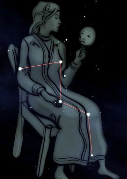 Casiopea fue muy buena conmigo, aunque un poco vanidosa tiene buen corazón, simplemente quiere mucho a su hija. Por eso la llevé hasta su constelación, esa que se reconoce por sus 5 estrellas en forma de M, y la dejé tranquilita.